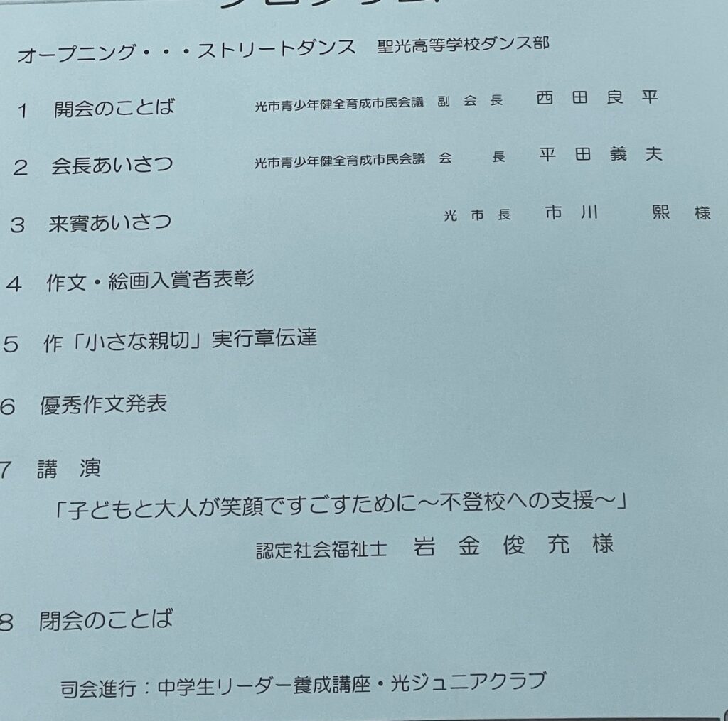 2月17日(土)に第17回光市青少年健全育成推進大会に出席してきました。