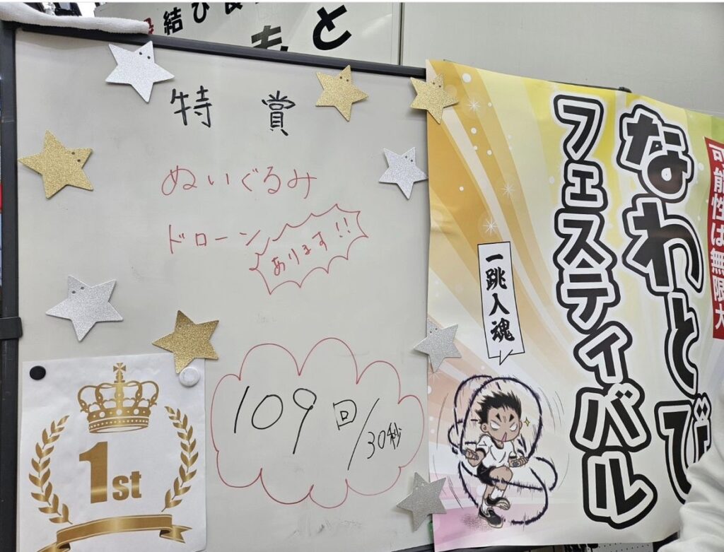 さらに!どちらのコースを選んでも、今日1日のなわとび最高記録者の方には「1番飛んだで賞」をプレゼント✨