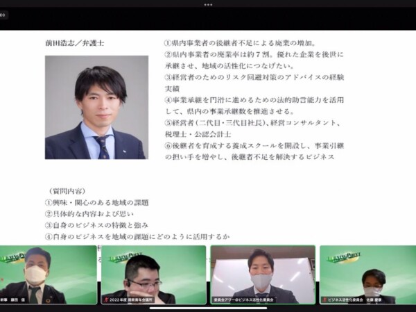 今回は完全WEBでの開催でしたが、随所に工夫が見られ改めてJCマンのスキルの高さを感じる例会でした♪総務広報委員会の皆さんお疲れ様でした!