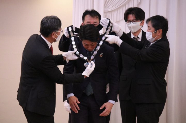 12/5、遠石会館にてプレジデンシャルリース伝達式並びに12月臨時総会が行われ、歴代の思いのこもった伝統のリースが、