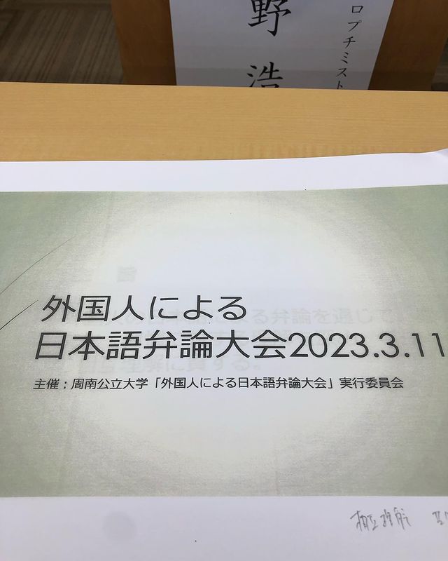 周南公立大学で開催された「外国人による日本語弁論大会」に、審査員として参加してきました。