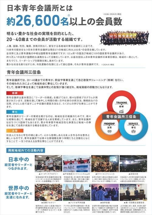 入会希望の情報がございましたら、 周南青年会議所までご一報、お願いいたします。