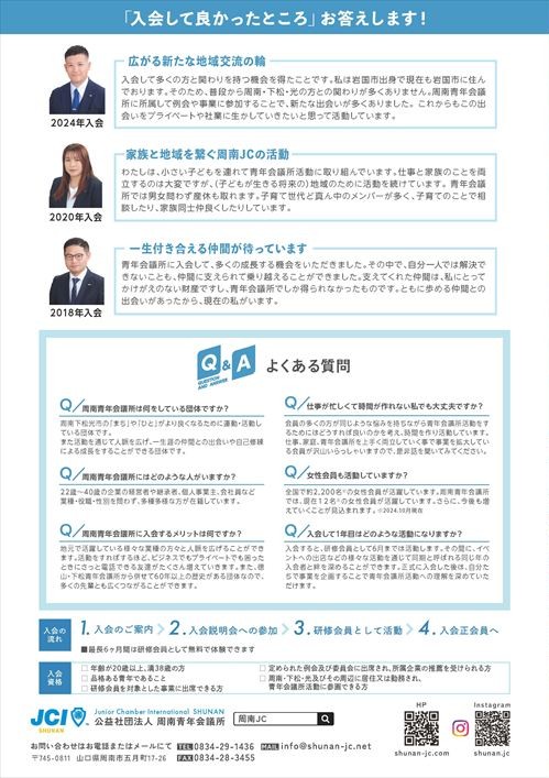 このホームページをご覧になり、JC活動に興味をお持ちの方はぜひ周南青年会議所までご一報ください。